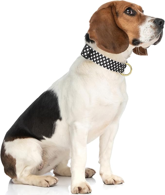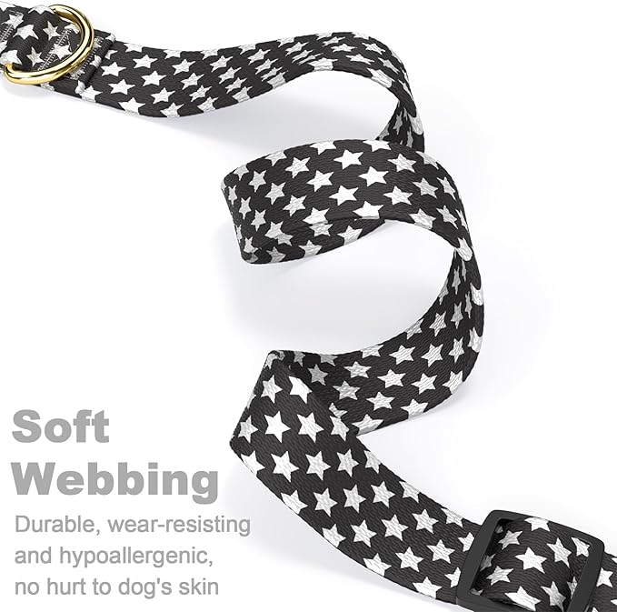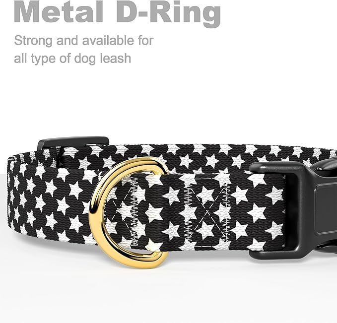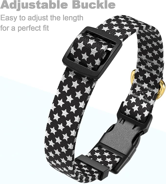 Rnivvi Dog Collar for Medium Dogs, Cute Heavy Duty Adjustable Puppy Collar with Quick Release Buckle for Boy Girl & Female, Pet Accessories for Walking Running, M Length 1" Width, Black Star