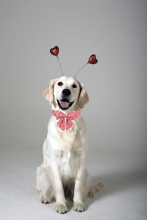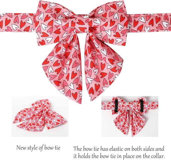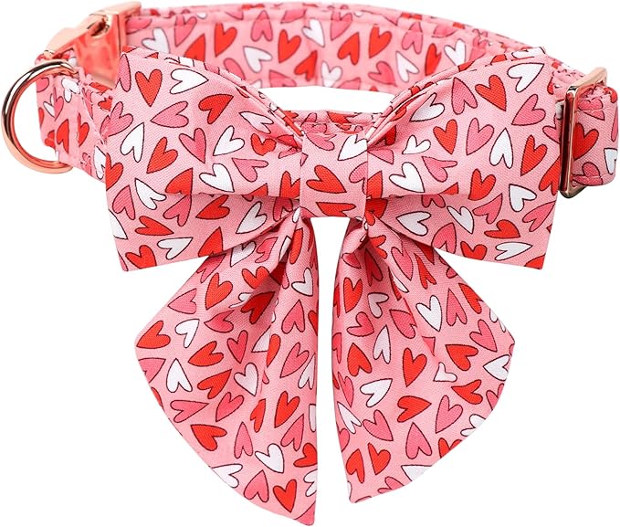 Lionet Paws Dog Collar with Bowtie, Sailor Bow, Metal Buckle, Adjustable, Small, Red, Pink, Detachable Stylish Bowtie, Fits Dog Neck 10-16 Inches