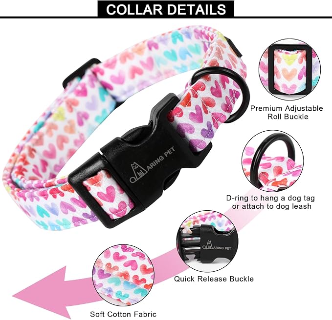 ARING PET Valentine's Day Dog Collar, Cute Colorful Heart Pet Collars with Quick Release Buckle for Puppy Small Medium Large Boy Girl Dogs-XS