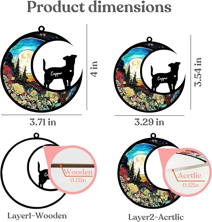- 🐾 Personalized and Heartfelt 🐾: "No Longer By My Side But Forever in My Heart" - Our laser-engraved quote resonates with the love for dogs. You can also personalize it with your own, pet's breed, name, moom background, year date, and the message on the moon.