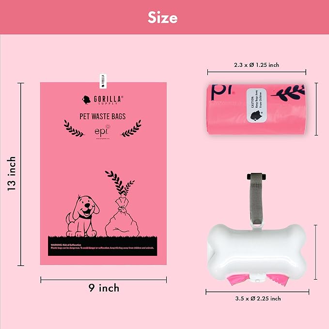 GORILLA SUPPLY 1000 multicolor poop bags for dogs with Dispenser and Leash Tie, 9" x 13", Mixed