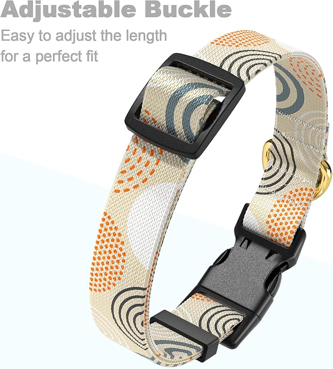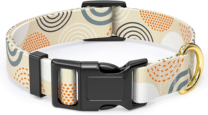Rnivvi Dog Collar for Large Dogs, Cute Heavy Duty Adjustable Puppy Collar with Quick Release Buckle for Girl & Female, Pet Accessories for Walking Running, L Length 1" Width, Modern Circle Art
