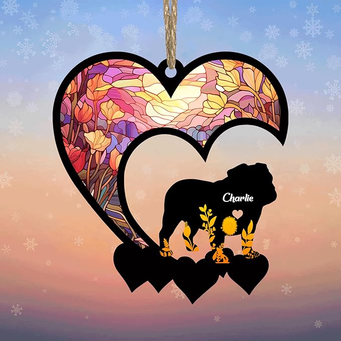 LOVELYPOD Bulldog Pet Memorial Suncatcher Ornament, Personalized Memorial with Name, Dog Loss Sympathy Gift, Fiber Wood, Acrylic Plexiglass