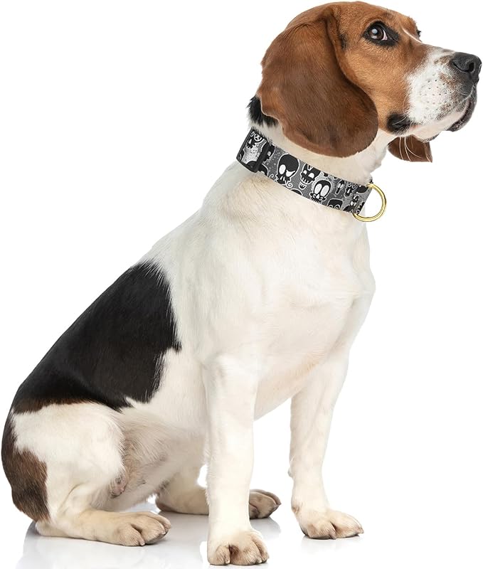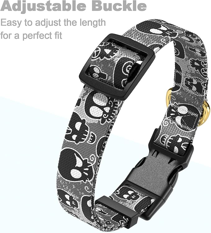 Rnivvi Dog Collar for Medium Dogs, Cute Heavy Duty Adjustable Puppy Collar with Quick Release Buckle for Girl & Female, Pet Accessories for Walking Running, M Length 1" Width, Black Skull