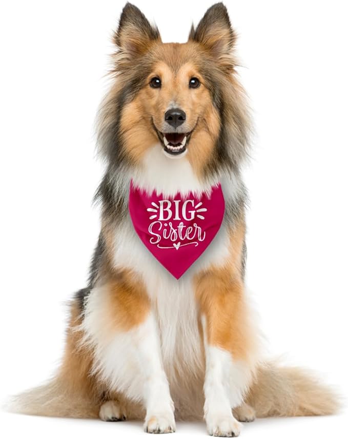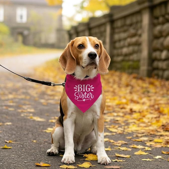 Big Sister Dog Bandana, Dog Bandana, Deep Pink Pet Dog Scarf Accessories, Pet Dog Triangle Scarf, Dog Bandana for Small Medium Dogs, Baby Announcement Dog Bandana, Dog Bandana Pet Scarf (M)