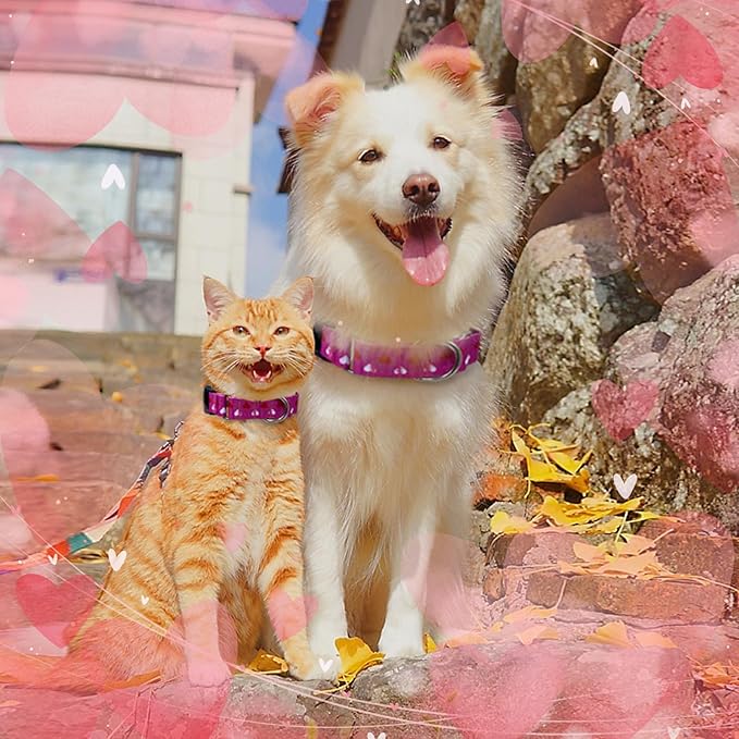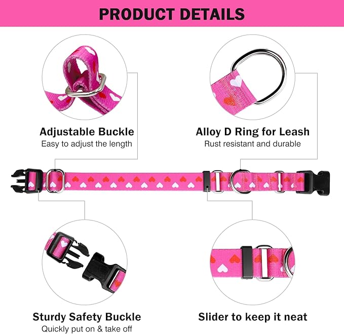 Hikiko Valentine's Day Dog Collar for Small Medium Large Dogs Adjustable Heart Martingale Collars with Quick Release Buckle (Pink Love,S)