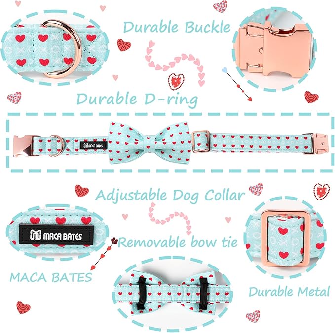 Maca Bates Valentines Dog Collar with Bow Comfortable Soft Heart Dog Collar with Metal Buckle Adjustable Puppy Collar Valentine's Day Gift for Small Medium Large Dog