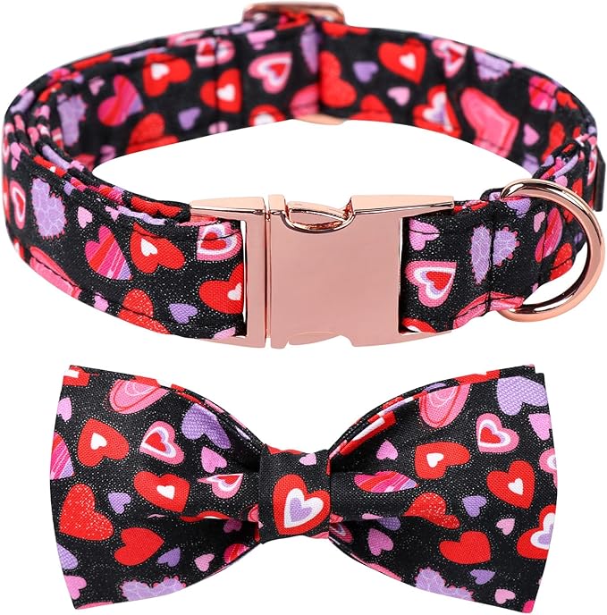 Lionet Paws Valentines Dog Collar Bowtie, Dog Bowtie Collar with Metal Buckle for Dogs, Adjustable Fabric Black Dogs Collars Girl Boy, S, Neck 10-16 in