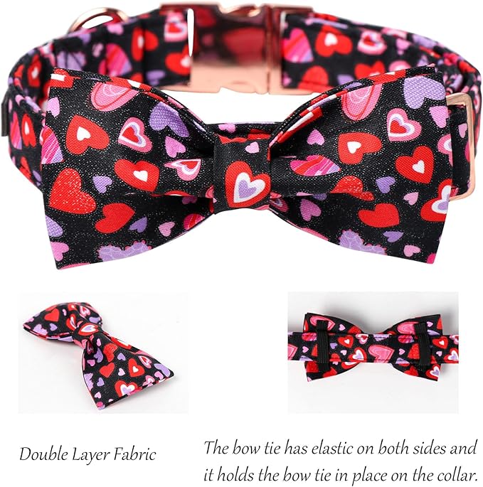 Lionet Paws Valentines Dog Collar Bowtie, Dog Bowtie Collar with Metal Buckle for Dogs, Adjustable Fabric Black Dogs Collars Girl Boy, XL, Neck 16-26 in