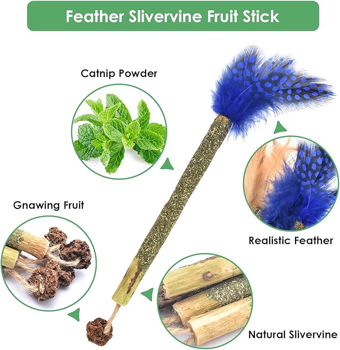 Bissap 12 PCS Silvervine Chew Sticks for Cats, Catnip Chew Sticks Cat Toys for Indoor Cat Kitten Teeth Grinding Interactive Feather Toys for Aggressive Chewers Dental Care