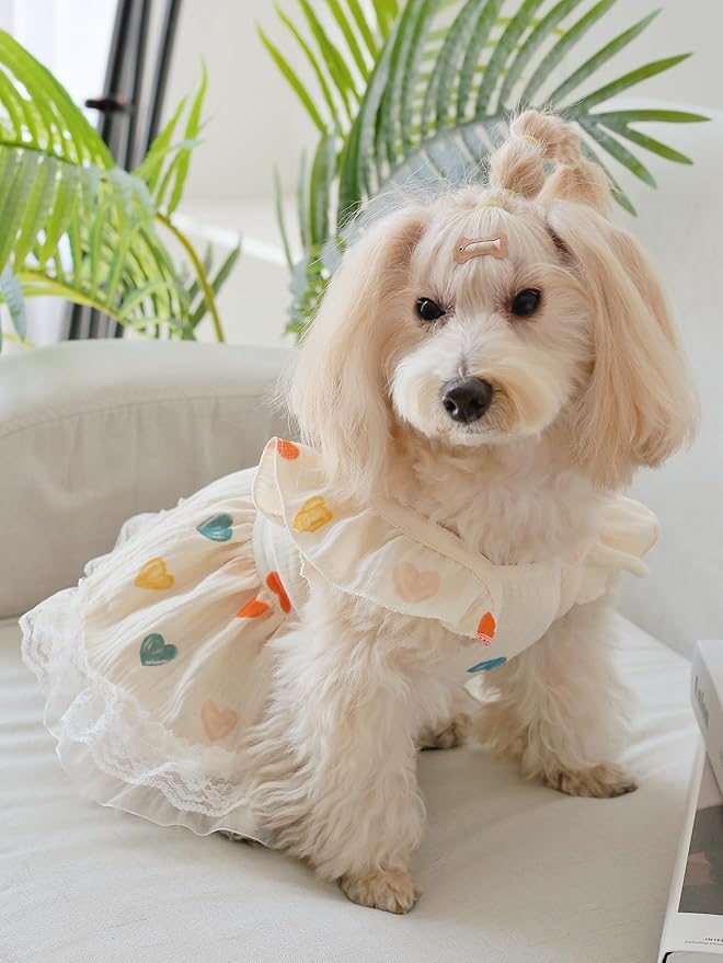 QWINEE 2pc Cute Heart Pattern Dog Dress Ruffle Trim Princess Dress Cat Vest Dress Lace Trim Summer Dress Pet Clothes for Small Medium Cats Dogs Kitten Puppy Black Multi X-Large