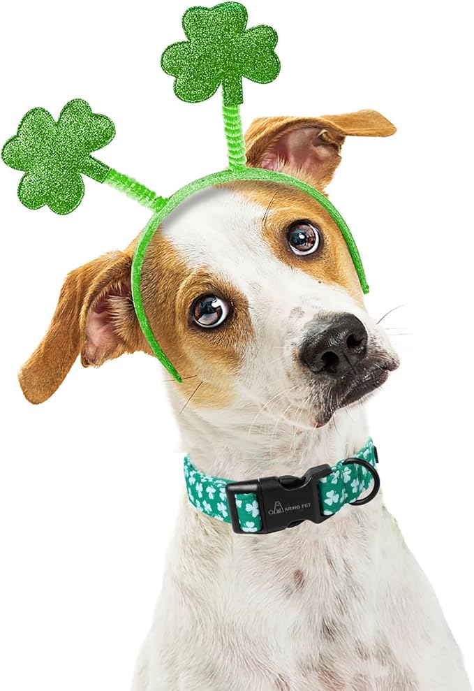 ARING PET St Patrick's Day Dog Collar, Cute Green Clovers Pet Collars with Quick Release Buckle for Puppy Small Medium Large Boy Girl Dogs-XS