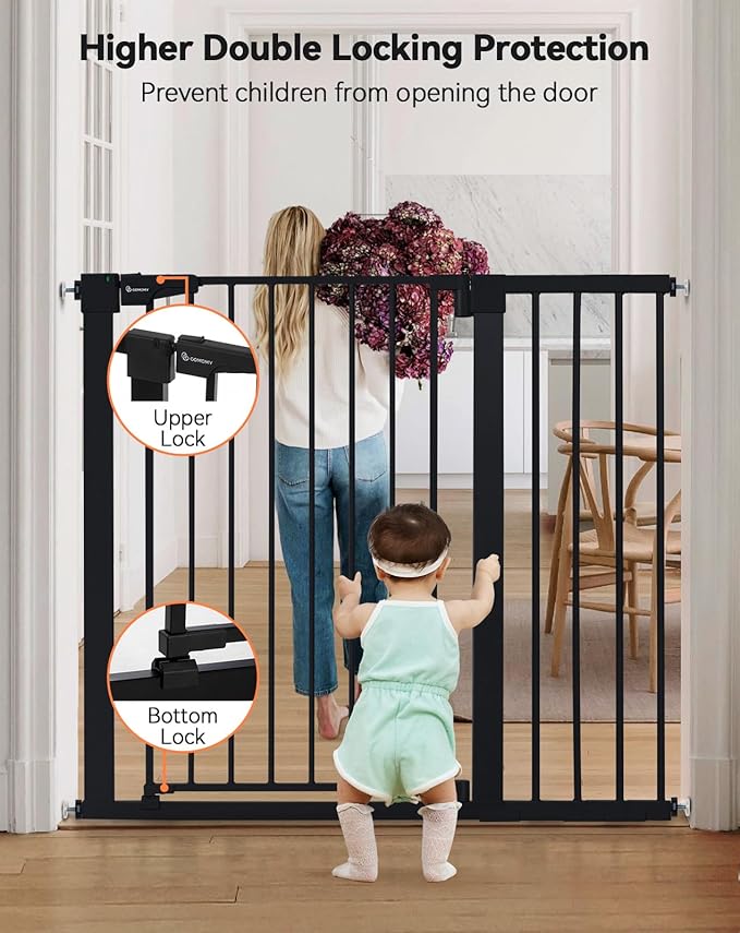 COMOMY 36" Extra Tall Baby Gate for Stairs Doorways, Fits Openings 29.5" to 43.3" Wide, Auto Close Sturdy Safety Dog Gate for House, Pressure Mounted Easy Walk Through Pet Gate with Door, Black