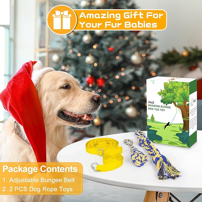 XiaZ Tug of War Dog Toy, Interactive Dogs Toy Bungee Hanging Tether with 2 Chew Rope Toys, Heavy Duty Puppy Outdoor Activity Aggressive Chewers Best Small to Large Boredom Exercise and Play (Yellow)
