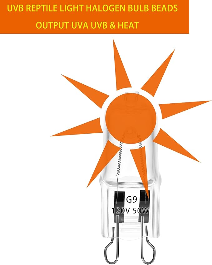 6 Pack UVA UVB Reptile Light Halogen Bulbs Beads Heat Lamp (50 Watt) Clear