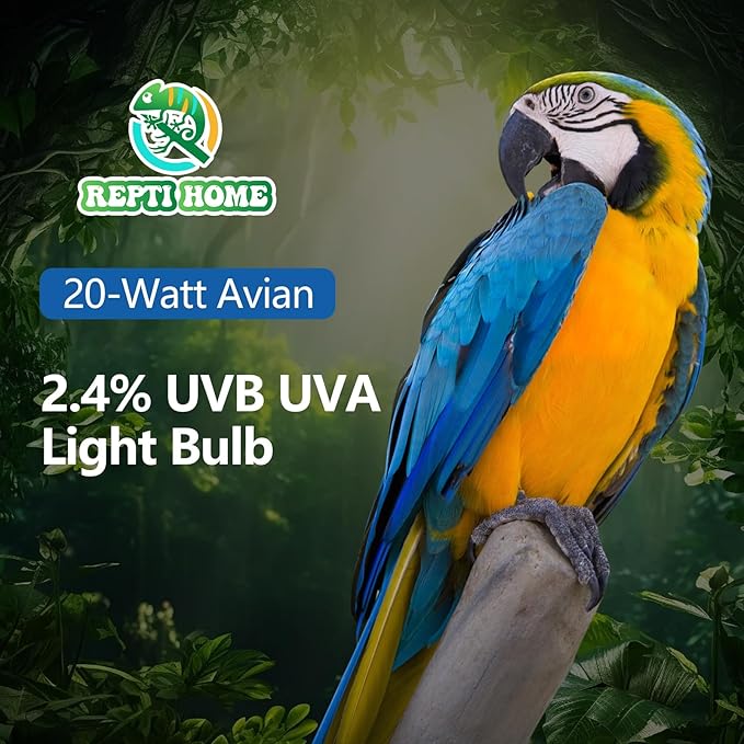 About This Close to Natural Sun Light : REPTI HOME 2.4 UVB light bulb for birds mimics a natural sun... Read more