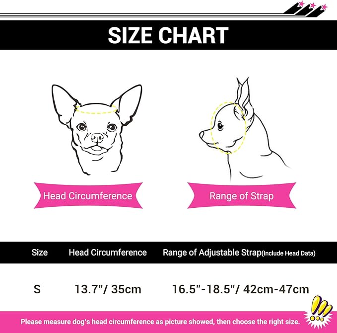 About This Size S: Helmet head circumference of about 14 inches. Range of strap: 16.5”-18.5”, suggest for 17-27 lbs dogs.... Read more