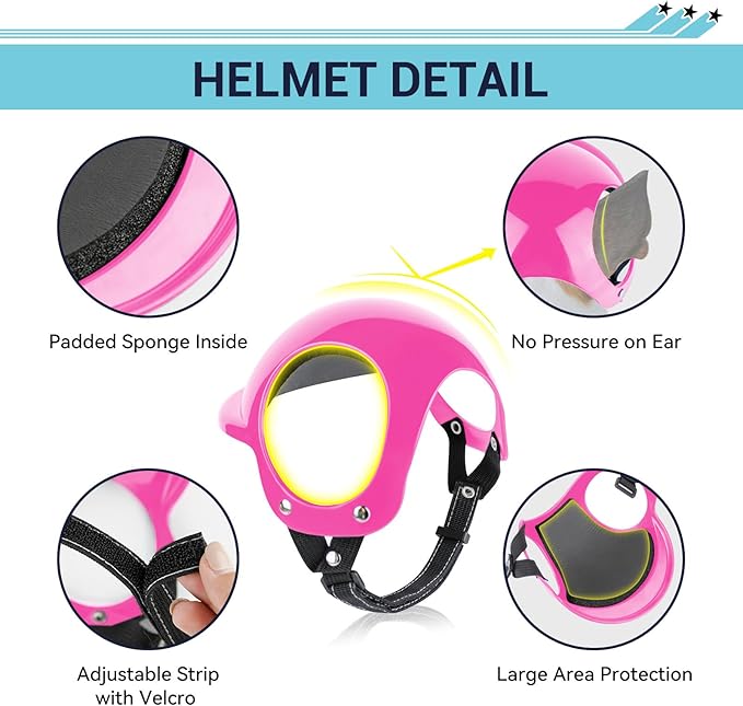 LESYPET Dog Helmet for Small Dog, Pet Hat for Puppy Cat with Ear Holes Safety Cap Adjustable Strap Head Protection for Outdoor Biking Riding Walking, Pink Small