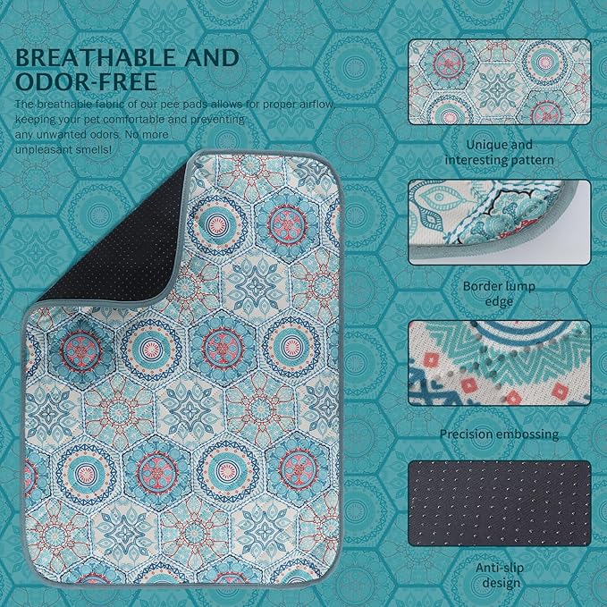 IEUUMLER Washable Pee Pads for Dogs, 2 Pack Non-Slip & Waterproof Pack Whelping Pad, Reusable Washable Puppy Potty Training Pad with Fast Absorbent for Playpen EU007 (Green Medallion, 30"X20"-2pcs)