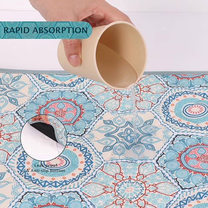 IEUUMLER Washable Pee Pads for Dogs, 2 Pack Non-Slip & Waterproof Pack Whelping Pad, Reusable Washable Puppy Potty Training Pad with Fast Absorbent for Playpen EU007 (Green Medallion, 36"X24"-2pcs)