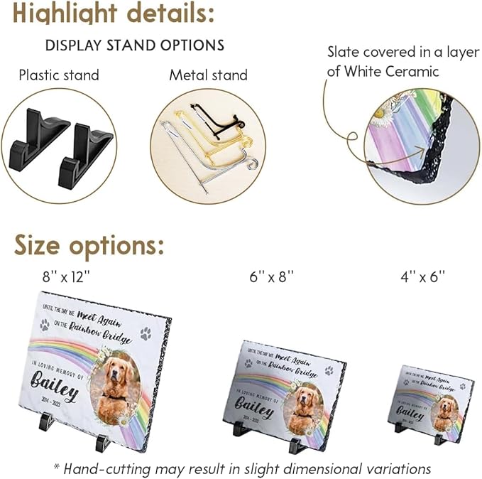 Rainbow Bridge Dog Memorial Gifts for Loss of Dogs - Custom Slate Stone in Loving Memory of Cat, Grave Marker to Decor Bereavement, Engraved Paw Prints on Pet Lovers' Hearts