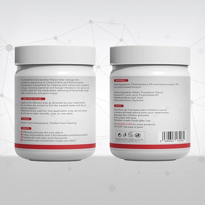 NOVEHA Pet Wipes - Formulated Pet Wipes - for Facial and Finger Folds, Underarms - 3" x 2" Size (150 Counts)