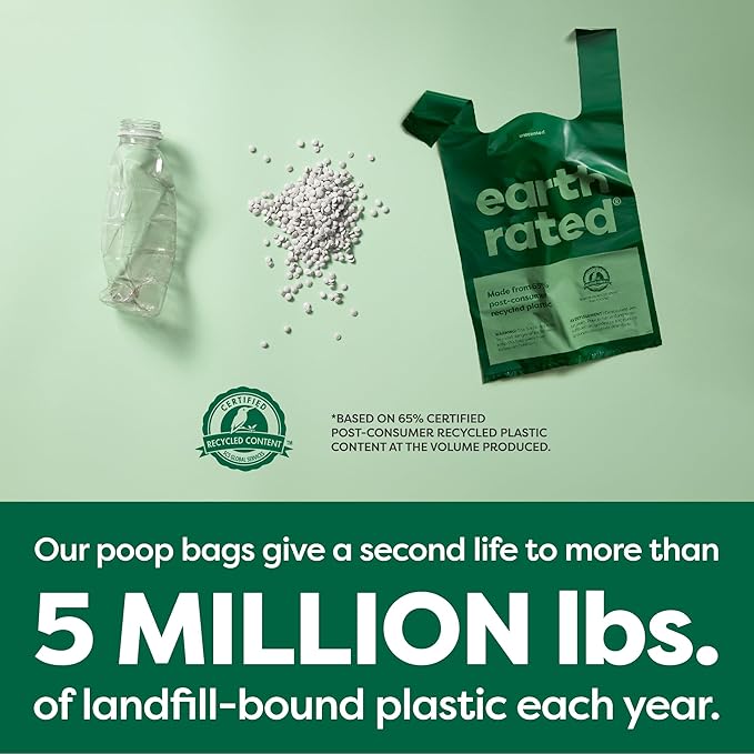 - A BETTER POOP BAG: We make our dog poop bags with 65% certified post-consumer recycled plastic, giving a second life to over 5 million pounds of landfill-bound plastic a year.