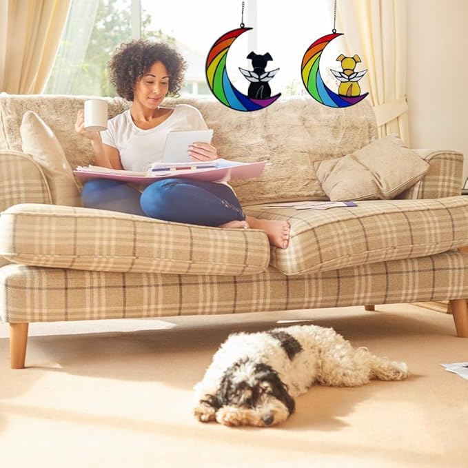 - 【Unique Design】 This dog loss sympathy gift has a unique design. There are angel puppies of different colors on the seven-color rainbow moon. When the gentle breeze blows over the rainbow moon, the dog pendant will sway with the breeze, which is very vivid and charming, reminding you of the wonderful times spent with the dog. It is very suitable as a great sympathy gift for any dog lovers
