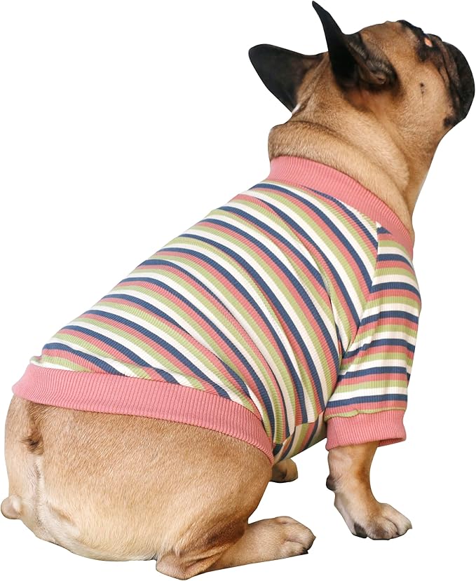 iChoue English Bulldog High Stretchy Breathable Summer Cooling T Shirts Vest Clothes for Medium Dogs Large French Frenchie Pug English Pitbull Boston Terrier Light Red Stripe - XXLarge