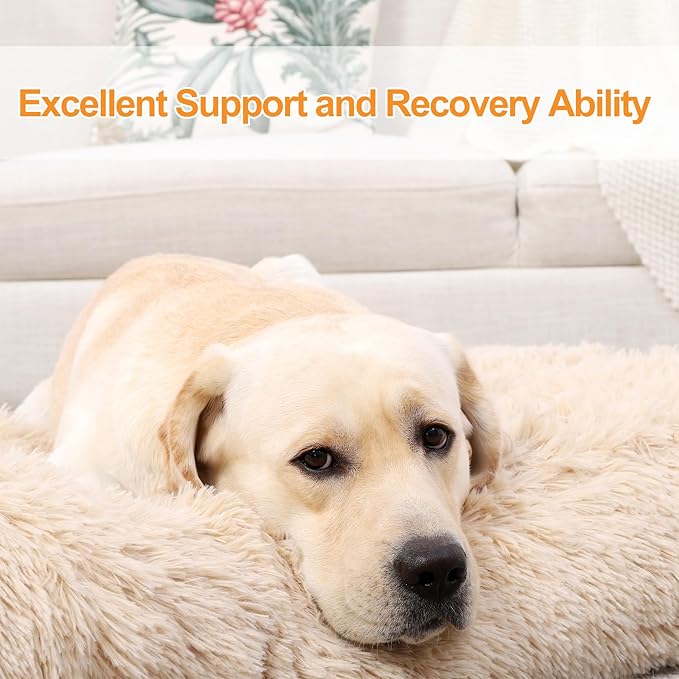 KSIIA Dog Crate Bed Washable Dog Beds for Extra Large Dogs Deluxe Plush Fluffy Comfy Thick Kennel Pad Anti-Slip & Anti-Scratch Pet Sleeping Mat, 41 x 27 Inch, Camel
