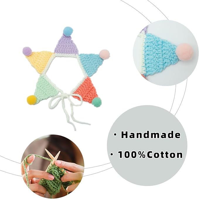 Halloween Cat Costume,Handmade Knitted Rainbow Dog Bandanas,Five-Pointed Star Cat Outfit,Dog Costume,Outfit Accessories(Rainbow)