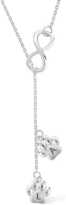 AILIN Custom Dog Paw Print Necklace For Women 925 Sterling Silver/Brass Infinity Initial Dog Memorial Necklace Personalized Gifts For Her Dog Lovers