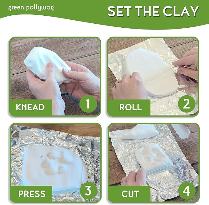 - SIMPLE AIR-DRY CLAY KIT – Capture your pet's paw print effortlessly with our air-dry clay. This kit comes with enough clay for large breeds such as German Shepherds, Labradors, Golden Retrievers, Poodles, Huskies, Great Danes or two or more prints of smaller breeds and cats. Knead the clay for 2 minutes, place on aluminum foil and roll flat, wipe paw clean of dirt, dip paw in water, press the paw into the clay imprint area and cut into desired shape. Allow it to dry. Note: Do not open bag until ready for immediate use.