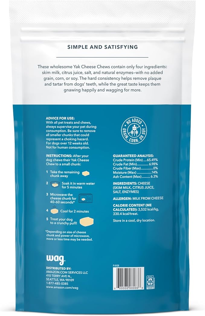 Amazon Brand - Wag Yak Cheese Himalayan Dog Chews, Dog Treats for Large Size Dogs, All Natural, High Protein for Aggressive Chewers, 35-55 lbs, 3 Count, 9.9 oz