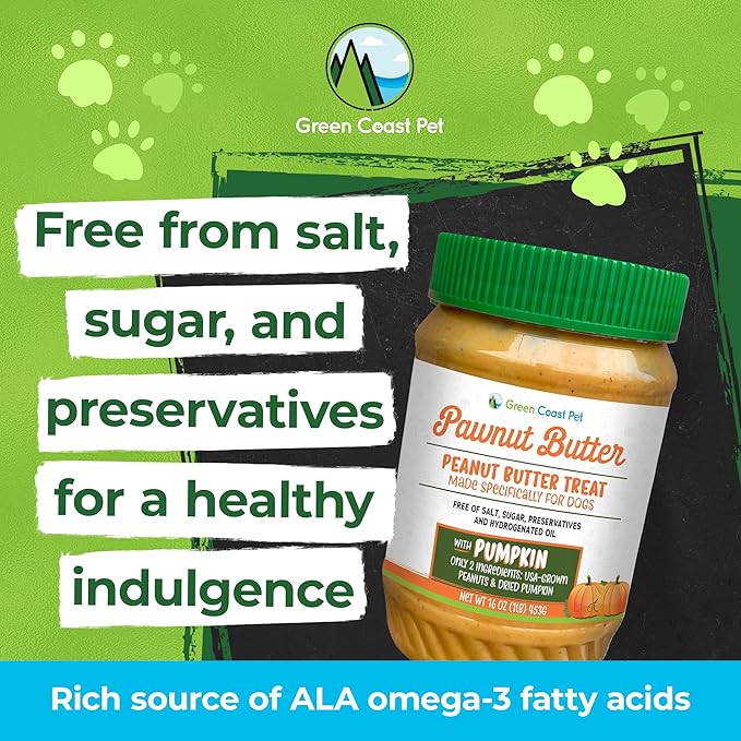 Natural Peanut Butter for Dogs Safe - 100% Healthy Dog Treats - No Sugar, Xylitol Free, Digestive Support - Puppy Dog Peanut Butter with Pumpkin 16 oz - Made in USA Premium Quality