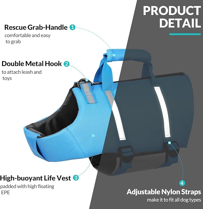 About This HIGH FLOATING DOG SWIMMING VEST - This ripstop dog life jackets is made of high-density Oxford material and... Read more