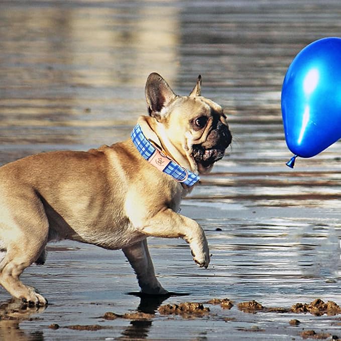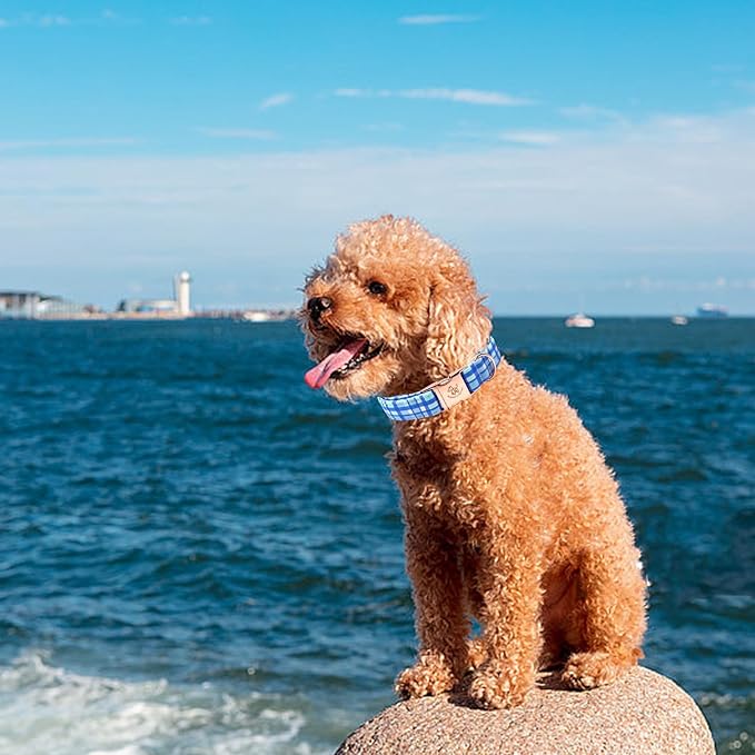 Elegant Little Tail Blue Plaid Pattern XL Dog Collar, Unique Seasonal Design, Adult Large Dogs