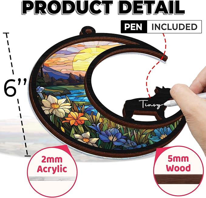- High Quality: Crafted from eco-friendly wood and high-quality acrylic, this 6-inch diameter, 7mm thick suncatcher combines durability with elegant design.