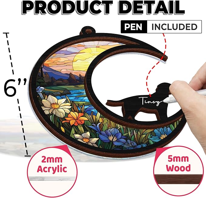- Package Includes: 1 Labrador Memorial Suncatcher Dog comes with a long iron chain, 1 Pen, 1 Pet Lover Sign Gift, 1 Gift Box. Painstakingly designed with profound care and meticulous attention to detail, this personalized cat memorial ornament holds profound meaning as a treasured keepsake for those who hold their beloved pets close to their hearts.