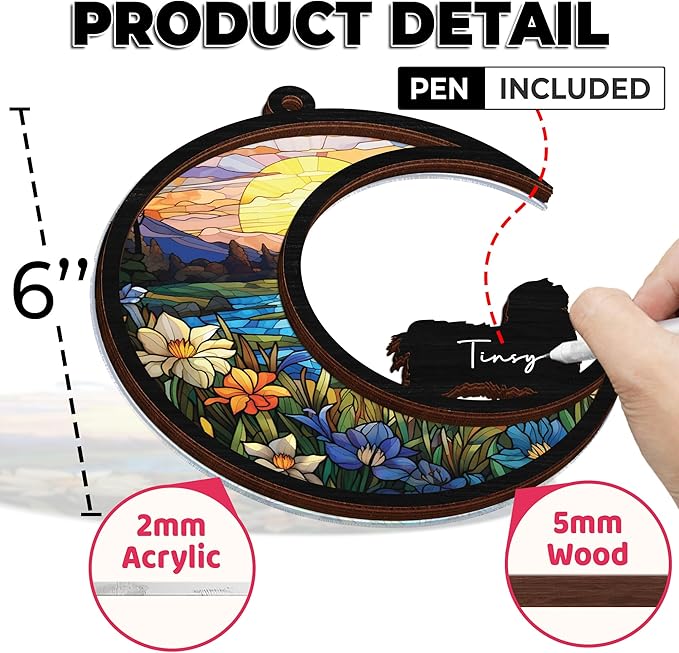 - High Quality: Crafted from eco-friendly wood and high-quality acrylic, this 6-inch diameter, 7mm thick suncatcher combines durability with elegant design.
