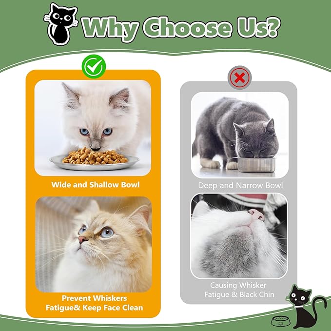 6-Pack Stainless Steel Cat Food Bowls, Shallow Whisker-Friendly Non-Slip Silicone Base Metal Dishes, Easy to Clean Indoor Feeding Flat Plates for Cat, Kitten, Small Dog (6.7")