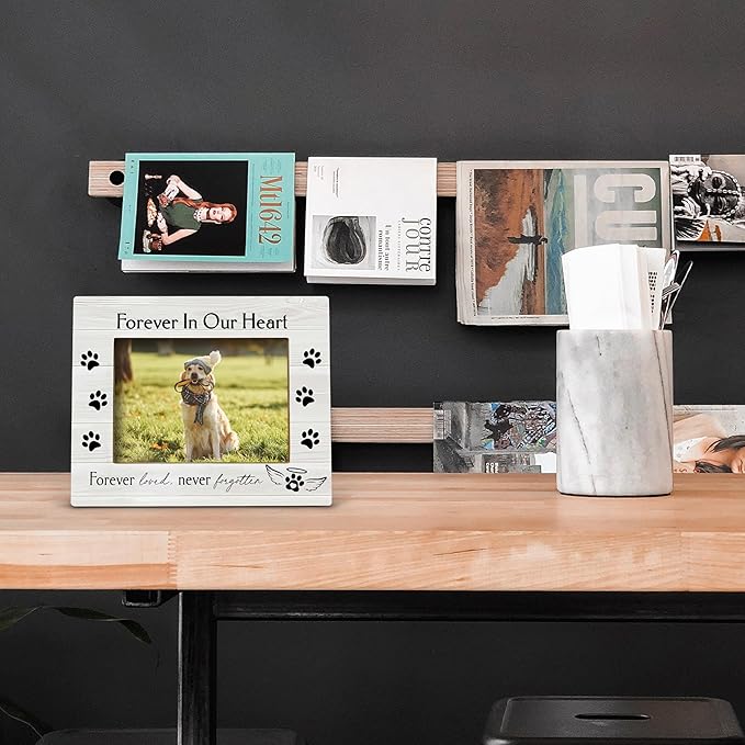 FONDCANYON Forever in Our Heart Pet Memory Picture Photo Frame,Pet Dog Cat Memorial Picture Frames,Pet Loss Sympathy Gift,Sympathy Gifts For Loss Of Dog,Passed Away Dog Memorial Gifts(5x7 Inch Photo) (Color2)