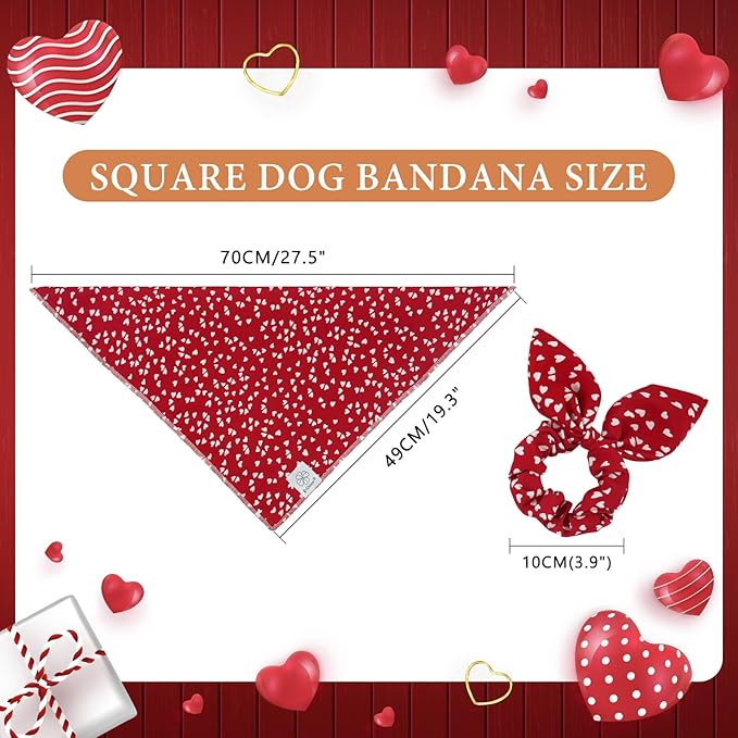 E-Clover Valentine Day Dog Bandana & Matching Scrunchie-Heart Dog Bandanas Red Pet Scarf Bib for Small Dogs Puppy Girl Boy Owner Valentines Mom Gift
