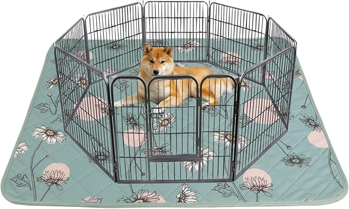IEUUMLER Washable Pee Pads for Dogs, 1 Pack Non-Slip & Waterproof Pack Whelping Pad, Reusable Washable Puppy Potty Training Pad with Fast Absorbent for Playpen EU007 (Green Daisy, 48"X48"-1pcs)