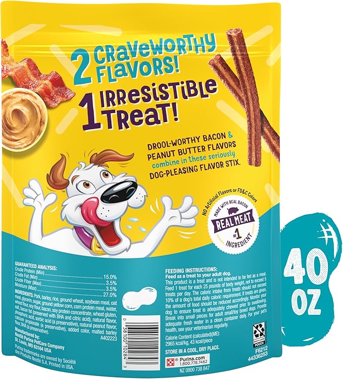 Purina Beggin' Flavor Stix with Bacon and Peanut Butter Flavor Dog Chew Stix - 40 oz. Pouch