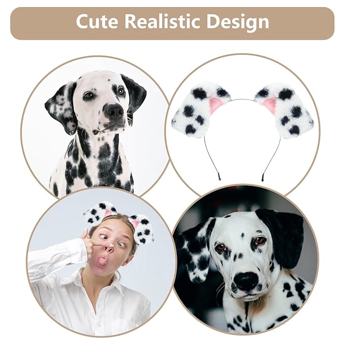 Beviliu Animals Ear Realistic Dalmatian Dog Ears Headband Fluffy Cat Bunny Pig Hairband Halloween Christmas Costume for Washing Makeup Cosplay Party
