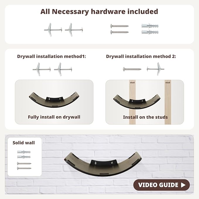 Cat Shelf with Comfortable Cushion - Curved Modern Cat Bed (Large Size) - Lotus Leaf Design Cats Wall Perch - Wall Mounted Cats Furniture for Sleeping, Playing, Climbing, and Lounging, Walnut