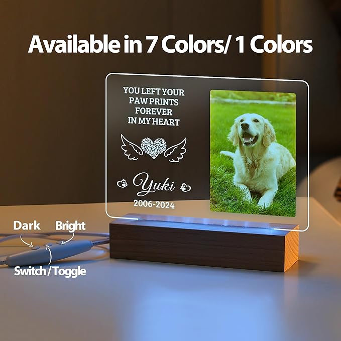 - Home Decor : This pet bereavement gift is designed with a detachable power cord, not only can be used as a pet memorial gift, but also a cozy night light, but also can make your room more attractive. Dog memorial gifts are suitable for living room, bedroom, fireplace, customized photos to keep the good times and memories, and the light of love will be with you every time the night falls.