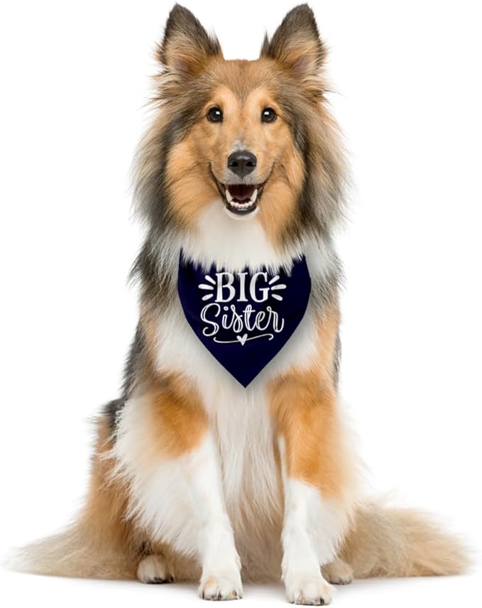 Big Sister Dog Bandanas, Dark Blue Dog Bandana, Pet Triangle Scarf Accessories, Pet Bandanas for Small Medium Large Dogs, Baby Announcement Dogs Bandana (M)