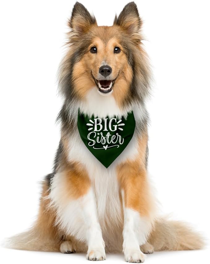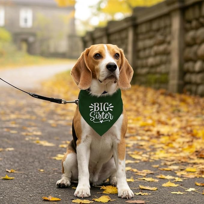 Big Sister Bandana for Dog, Pet Pregnancy Announcement, Dark Green Dog Bandana, Big Sister Dogs Shirt, Pet Bandana for Small Medium Dogs (M)